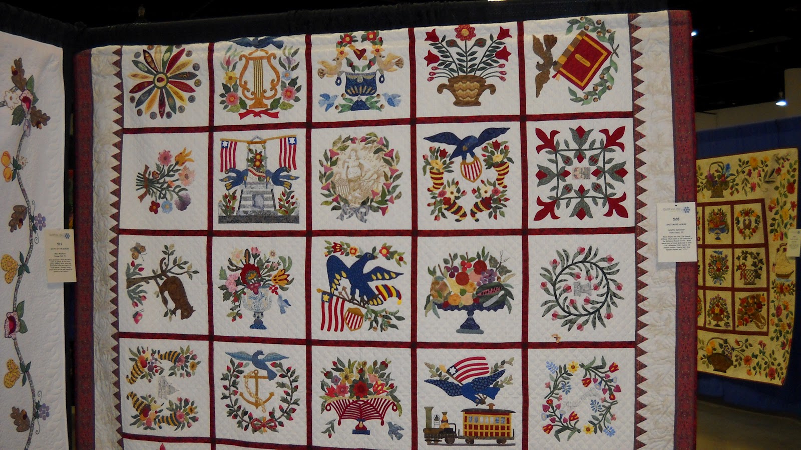 I only had a short time to look at the quilts and vendors booths, but enjoyed it very much. Here are a few of the beautiful quilts that were on exhibit. Some were ribbon winners, some I just liked. These include the bargello quilts. I am planning a bargello project in my near future.